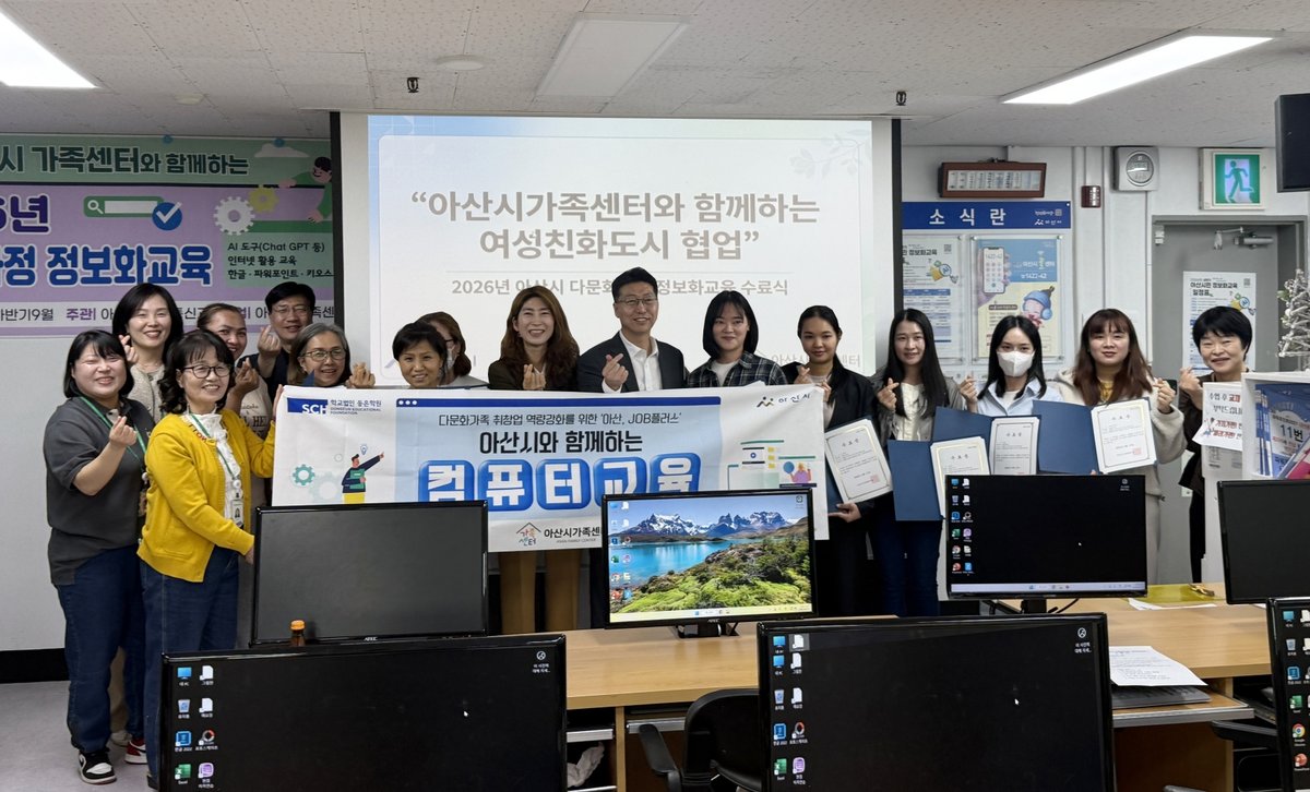 [충청중심뉴스] 아산시는 지난 4월 6일부터 2주간 아산시가족센터와 연계해 진행한 ‘다문화가정 맞춤형 정보화교육’과정을 성공적으로 마무리하고 17일 수료식을 개최했다고 밝혔다.