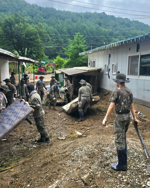 이에 김관수 32사단장을 비롯한 군장병 700여명은 도의 긴급 피해 복구 지원 요청에 따라 지난 금요일부터 주말까지 수해 현장에서 침수 주택 유입 토사 정리, 산사태 지역 복구 등에 구슬땀을 흘렸다.