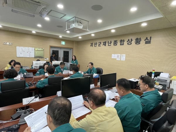 [충청중심뉴스] 충북 괴산군은 장마철 집중 호우에 대비해 재난안전상황실에서 송인헌 괴산군수 주재로 호우 대비 긴급 상황판단회의를 열고 여름철 인명·재산 피해를 최소화하기 위한 분야별 대책을 회의를 진행했다고 밝혔다.