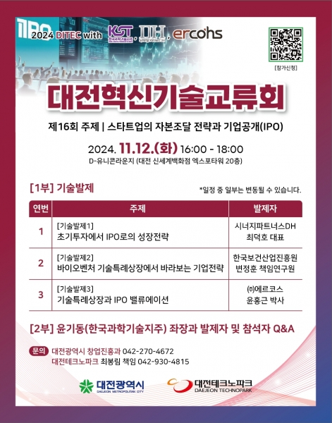 [충청중심뉴스] 대전시는 오는 11월 12일 대전신세계 엑스포타워 20층 D-유니콘라운지에서 올해 열여섯 번째 ‘대전혁신기술교류회’를 개최한다.