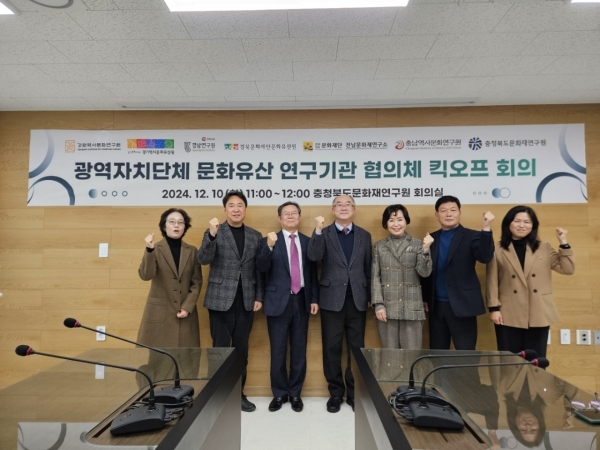 [충청중심뉴스] 충남역사문화연구원을 비롯한 7개 광역자치단체 문화유산 연구기관은 문화유산의 보존·관리 및 활용, 학술연구, 지역학 연구 등 상호 협력을 위해 2024년 12월 10일 오전 11시 충청북도문화재연구원에서 광역자치단체 문화유산 연구기관 협의체를 구성하고 공식 활동에 들어갔다.