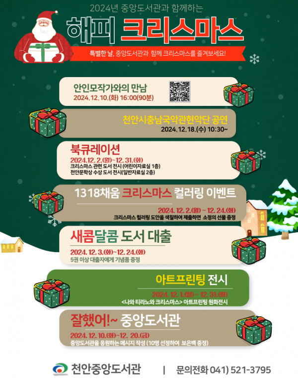 [충청중심뉴스] 중앙도서관은 연말 행사로 ‘중앙도서관과 함께하는 해피크리스마스’라는 주제로 다양한 행사를 진행한다고 18일 밝혔다.