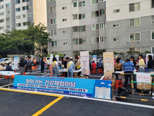 시 관계자는 “건강아파트 만들기 사업으로 주민들이 일상에서 건강생활을 실천하는 좋은 계기가 될 것으로 기대한다”며 “앞으로도 건강한 충주를 만드는 데 최선을 다하겠다”고 말했다.