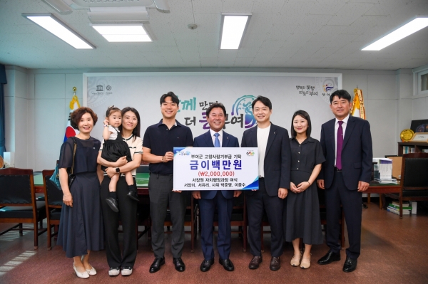 박정현 부여군수는 “군정 곳곳에서 헌신하신 서장원 과장님께 감사드리며 자녀분들의 부여 사랑 또한 깊이 감사드린다”며 “기부금은 지역주민의 복리 증진과 지역 발전을 위해 소중히 사용될 예정”이라고 말했다.
