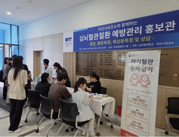 [충청중심뉴스] 아산시가 심뇌혈관질환의 사전적 예방관리 및 인식 개선을 위해 순천향대학교 보건센터와 연계해 ‘심뇌혈관질환 예방관리 홍보관’을 운영했다.