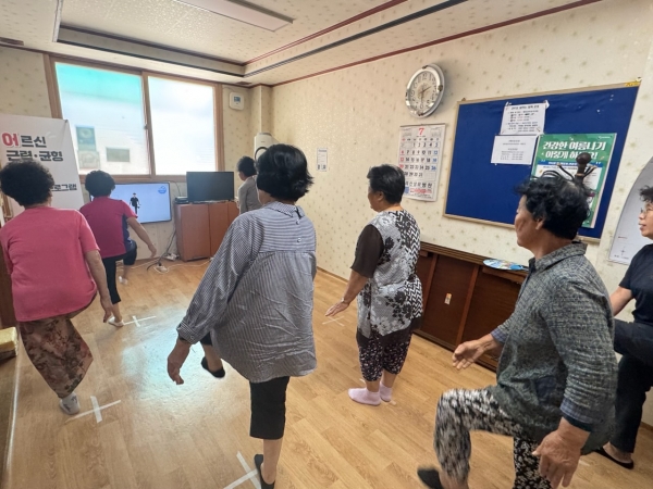 프로그램은 △둘이서 짝지어 하는 운동 △바닥십자 운동 등 근력 강화 동작 △저염·저당 식단 교육 △혈압 측정과 건강 상담 △건강행태 설문조사 등으로 구성돼 혹서기에도 어르신들의 건강한 신체활동을 유도한다.