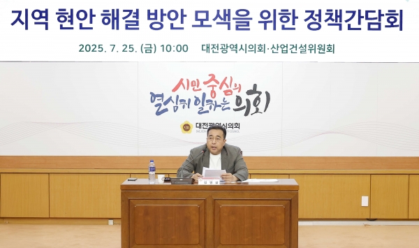 [충청중심뉴스] 대전시의회 김영삼 의원은 25일 시의회 3층 소통실에서 ‘지역 현안 해결 방안 모색을 위한 정책간담회’를 개최했다.