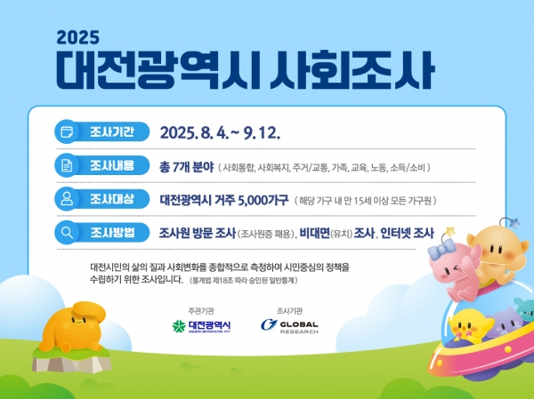조사 결과는 올해 12월 말, 대전시 홈페이지와 국가통계포털을 통해 시민에게 공개된다.