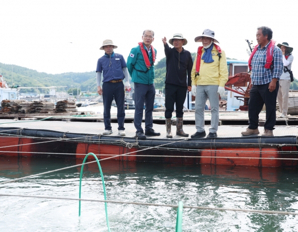 [충청중심뉴스] 최근 천수만 지역에 고수온주의보가 발효된 가운데, 가세로 태안군수가 관내 가두리양식장을 찾아 고수온 대응책을 점검했다.