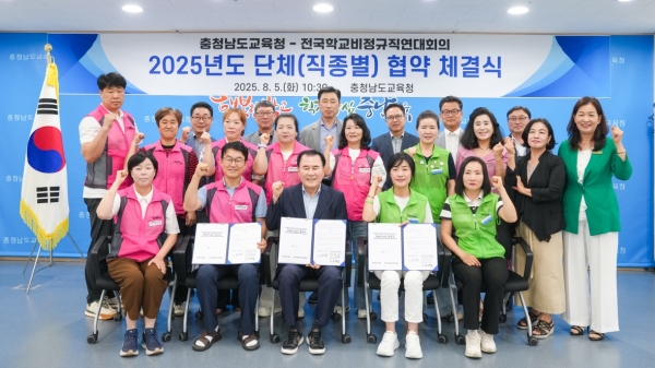 [충청중심뉴스] 충남교육청은 2025년 8월 5일 도교육청 회의실에서 전국학교비정규직연대회의와 단체 협약을 체결했다.