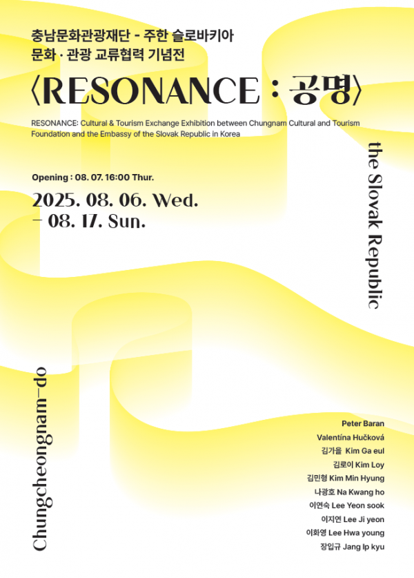 [충청중심뉴스] 충남문화관광재단은 충청남도 문화예술 서울전시장 CN갤러리에서 주한슬로바키아대사관의 문화·관광 교류 협력 선언을 기념해 기획전 ‘RESONANCE: 공명’을 8월 6일부터 8월 17일까지 총 12일간 개최한다.