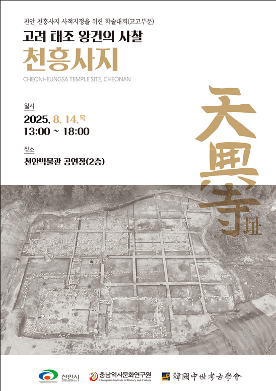 [충청중심뉴스] 천안시는 오는 14일 천안박물관 강당에서 ‘고려 태조 왕건의 사찰, 천흥사지 고고부문’을 주제로 한 학술대회를 연다고 11일 밝혔다.