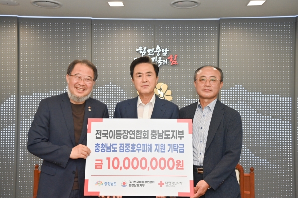 [충청중심뉴스] 충남도는 11일 전국이통장연합회 충남도지부로부터 집중호우 피해복구 지원을 위한 기탁금 1000만원을 전달받았다고 밝혔다.