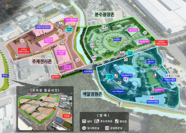 특히 조직위 자체 현장점검, 외부자문을 거쳐 행사장을 기존 5대 전시관 중심에서 주제전시존, 분수광장존, 색깔정원존 등 3대 권역으로 통합 조정했다.