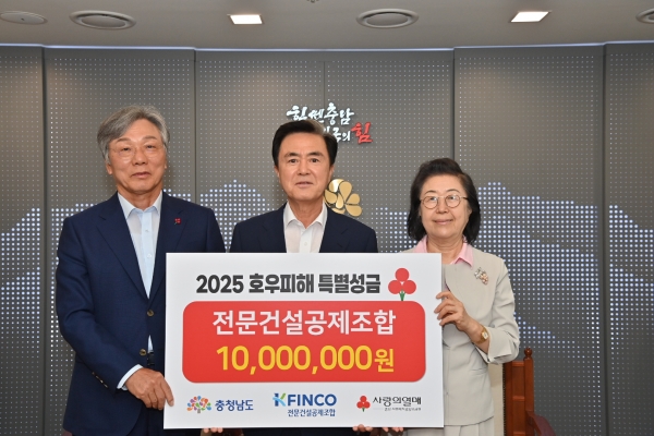 이날 성금 전달식에는 김태흠 지사와 이은재 전문건설공제조합 이사장, 성우종 충남사회복지공동모금회장 등이 참석했다.