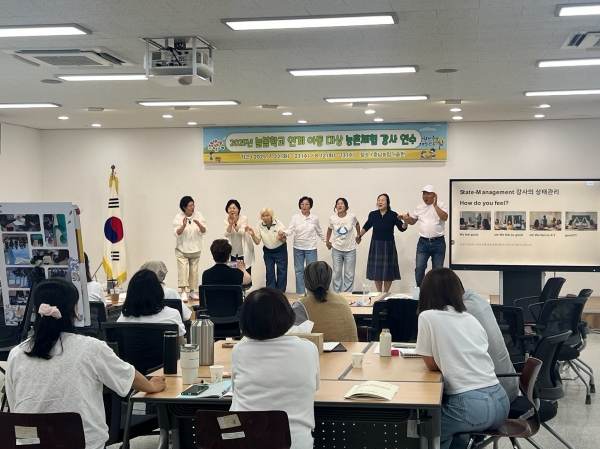 방과후 농촌체험 교육 프로그램의 품질 향상과 현장 강사의 전문성 강화를 목적으로 마련한 이번 연수는 농촌체험 강사 48명을 대상으로 1기와 2기로 나눠 진행했다.
