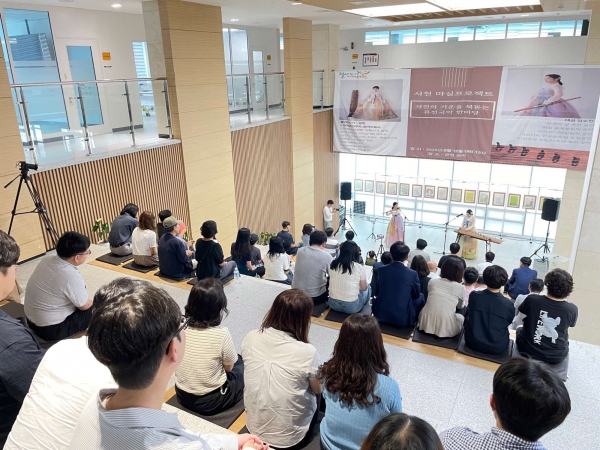 [충청중심뉴스] 서천군은 지난 12일 군청 로비에서 ‘청사 마실 프로젝트’의 다섯 번째 행사로 "서천의 기운을 북돋는 퓨전 국악 한마당”을 개최했다.