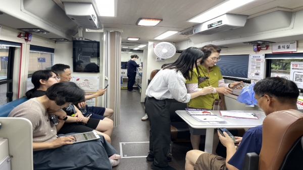 [충청중심뉴스] 논산시는 혈액 수급이 불안정한 여름철을 맞아 12일 논산시보건소 주차장에서 ‘사랑의 헌혈 버스’를 운영하며 헌혈 참여를 독려했다.