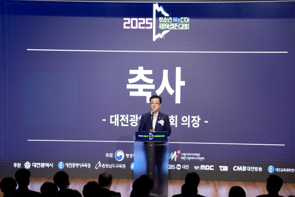 [충청중심뉴스] 대전시의회 조원휘 의장은 14일 대전시청자미디어센터에서 개최된 2025 청소년 미디어제작 경진대회 시상식에 참석해 대회의 성공적 개최를 기원하며 지역사회에 대한 청소년들의 높은 관심과 열정을 응원했다.