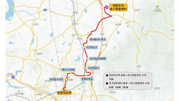 [충청중심뉴스] 천안시는 다음 달부터 도심순환급행버스 15번 노선과 도심에서 대한민국 축구종합센터를 오가는 시내버스 442번 노선을 신설해 운행한다고 18일 밝혔다.