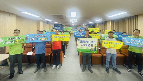 이날 농촌 현장에서 반복적으로 발생하는 온열질환 피해를 줄이기 위해 농업 현장에 꼭 맞는 예방수칙 실천을 다짐하는 시간을 가졌다.