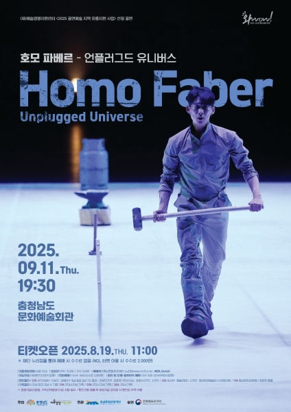충남문화관광재단 이기진 대표이사는 “‘2025–2026 충남방문의 해’를 맞아 충청남도 문화예술회관을 찾은 많은 분들이 세계적으로 작품성을 인정받은 현대무용 공연 ‘호모 파베르’를 통해 ‘문화로 행복한 충남’을 경험하시기 바란다”고 밝혔다.