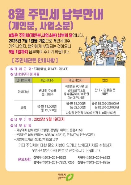 주민세 개인분은 7월 1일 현재 청주시에 주소를 둔 개인 세대주에게 부과된다.