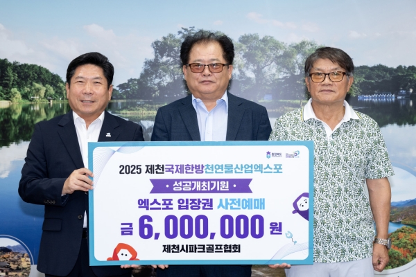 [충청중심뉴스] 제천시파크골프협회가 2025제천국제천연물산업엑스포의 성공 개최를 기원하며 사전예매에 적극 동참했다.