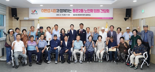 이날 간담회에는 이 시장을 비롯한 문평석 동문2동 노인회 분회장, 우종재 대한노인회 서산시지회장, 동문2동 노인회 회장 등 30여명이 참석했다.