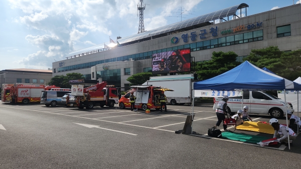 이번 훈련에는 영동경찰서 영동소방서 제2201부대 제2대대, 제6606부대, 보건소, 한국전력공사 영동지사, KT옥천지사, 한국전기안전공사 영동옥천지사 등 8개 기관이 참여했다.