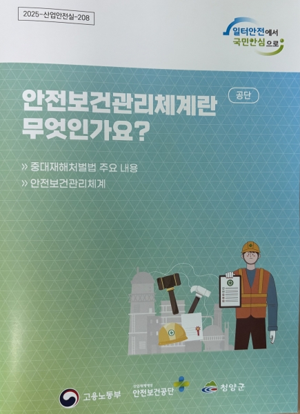 [충청중심뉴스] 청양군은 관내 사업장의 안전보건관리체계 구축을 돕기 위해 ‘안전보건관리체계 구축 미니 가이드북’을 제작·배포했다.