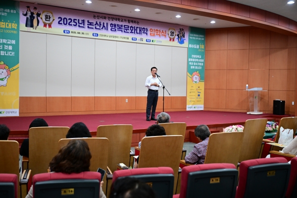 [충청중심뉴스] 논산시는 20일 건양대학교 명곡정보관 무궁화장홀에서 시민 평생학습 프로그램 ‘2025년 행복문화대학’ 입학식을 개최했다.