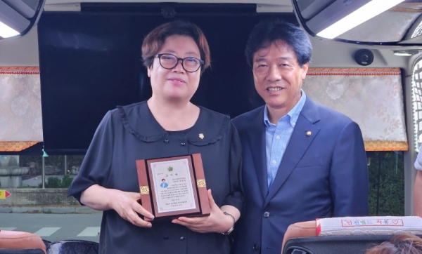 [충청중심뉴스] 서산시의회 가선숙 의원이 지난 19일 열린민주평화통일자문회의 서산시협의회 자문위원 역량강화‘이웃과 함께 아름다운 동행’에서 제21기 민주평화통일자문회의 서산시협의회 자문위원 일동으로부터 감사패를 받았다.