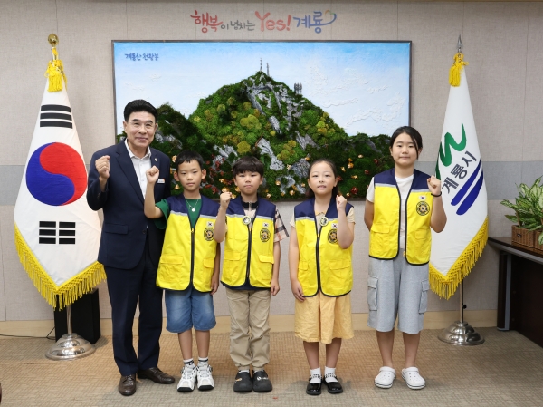 [충청중심뉴스] 계룡시는 20일 ‘2025 어린이 안전 히어로즈’ 위촉식을 열고 신규 위촉된 어린이 4명에게 위촉장과 안전 활동 조끼를 전달했다고 밝혔다.