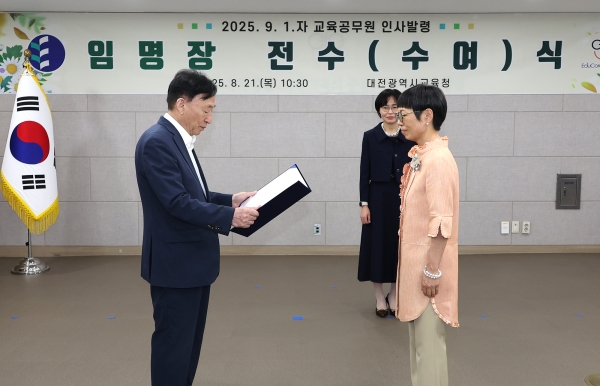 [충청중심뉴스] 대전시교육청은 8월 21일 본관 701호에서 2025.9.1.자 인사발령에 따른 ‘교육공무원 임명장 전수 및 수여식’을 개최했다.