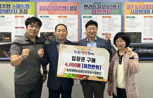 [충청중심뉴스] 청원생명농협쌀조합공동사업법인은 다가오는 2025 청원생명축제의 성공적인 개최를 위해 입장권 구매로 응원에 나섰다.