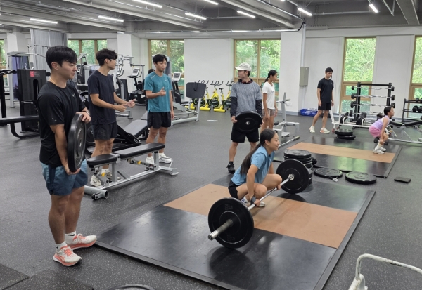 육상팀은 결초보은체육관 헬스장과 보은공설운동장에서 보은중·보은여중·속리산중학교 육상부 선수들에게 개인 맞춤형 기초 체력운동, 워밍업, 스프린트 등 실전 훈련을 지도했다.