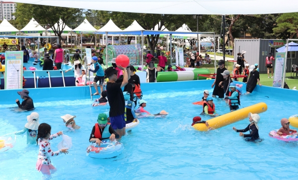 신장 140㎝를 기준으로 어린이와 청소년용 풀장을 구분해 체격에 맞는 공간에서 안전하게 물놀이를 즐길 수 있도록 했으며 영유아를 위한 에어풀장과 징검다리 슬라이드 등 전용 공간도 마련해 아이들이 안심하고 뛰어놀 수 있었다.