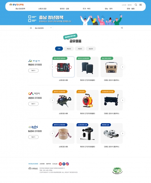 지금까지는 시군 청년센터가 개별 신청을 받아 대여를 진행했으나 이번 충남청년포털 기능 개편으로 대여를 원하는 청년들은 시군 청년센터 내 공구 구비 현황 확인부터 대여 신청까지의 과정을 더 쉽고 편하게 진행할 수 있다.