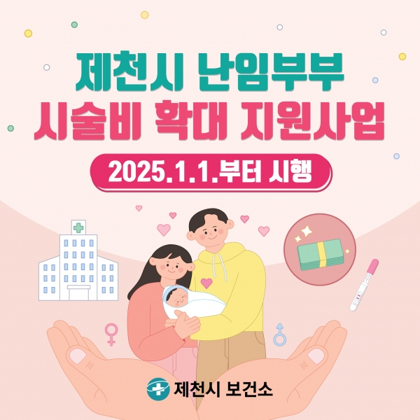 충북 최초로 시행하는 ‘난임 부부 시술비 확대 지원’은 올해부터 부부 모두 관내에 주민등록이 되어 있는 경우, 본인 부담금을 시술 상한액 한도 내에서 100% 지원한다.