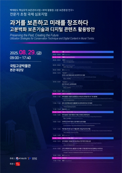 국내외 전문가와 관계자들이 고분벽화의 보존 기술, 디지털 콘텐츠 적용 사례 등 다양한 연구 동향을 공유하고 지속 가능한 보존 관리의 미래를 함께 모색할 예정이다.