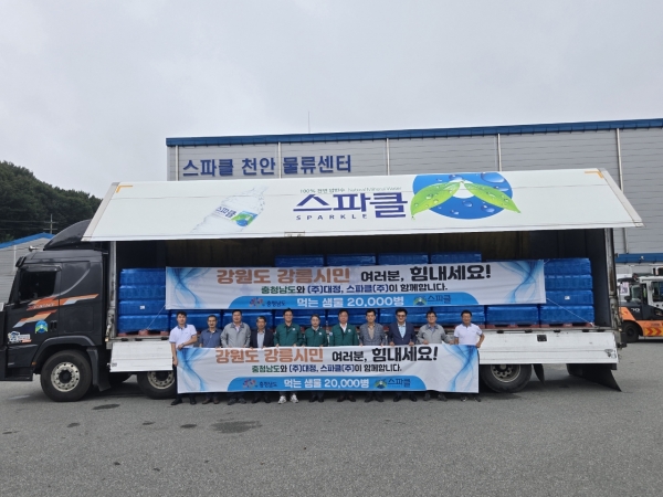 [충청중심뉴스] 충남도는 26일 최근 극심한 가뭄으로 식수난을 겪고 있는 강원도 강릉시에 도내 먹는샘물 업체인 ㈜대정과 스파클㈜의 협조를 받아 생수 2만병을 긴급 지원했다고 밝혔다.