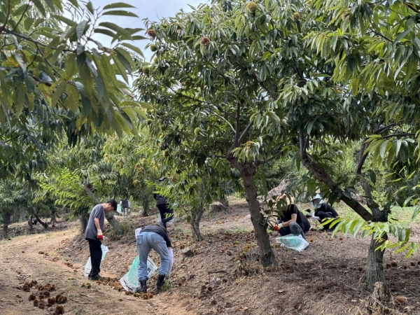 이번 프로그램은 농가를 돕는 자원봉사 활동과 체험비를 내고 일부 알밤을 가져갈 수 있는 체험 활동으로 나뉘어 진행된다.
