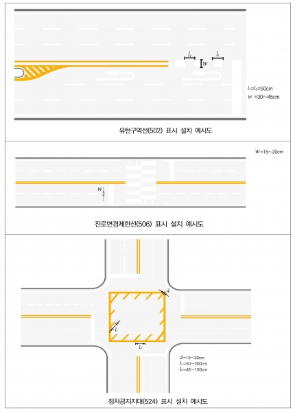 주요 개선 내용은 △원활한 유턴 유도를 위한 유턴구역선 길이 조정 △교차로 무리한 진입 방지를 위한 정차금지대 설치 △상습 정체 구간에서 끼어들기 억제를 위한 진로변경제한선 연장 △보행자 보호를 위한 횡단보도 전방 정지선 이격 확대 등이다.