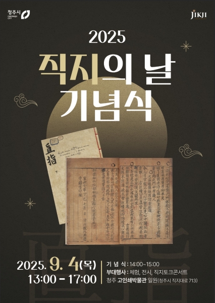 시 관계자는 “올해 처음 개최되는 직지의 날 기념식이 단순한 기념행사를 넘어 인류가 공유해야 할 기록문화유산의 가치를 되새기는 소중한 자리가 될 것”이라며 많은 관심과 참여를 당부했다.