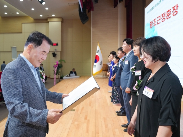 김지철 교육감은 “평생을 아이들과 함께하며 충남교육 발전에 헌신해주신 노고에 깊이 감사드린다”며 “오늘의 정부포상은 개인의 영예이자 가족 모두의 결실로 앞으로도 그 정신을 이어받아 모두가 함께 성장하는 교육을 실현하겠다”고 말했다.