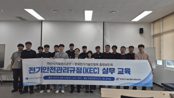 이번 교육은 한국전기기술인협회 충청남도회와 협력해 진행된 한국전기설비규정 실무 교육으로 KEC에 대한 체계적인 이해를 통해 담당자의 법규 준수와 기술 적용 역량을 강화하는 데 목적이 있다.