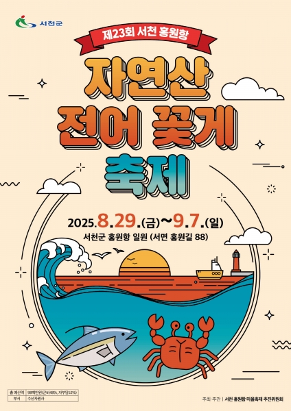 [충청중심뉴스] 서천군 서면 홍원항에서 오는 8월 29일부터 9월 7일까지 10일간 ‘제23회 자연산 전어·꽃게 축제’ 가 열린다.
