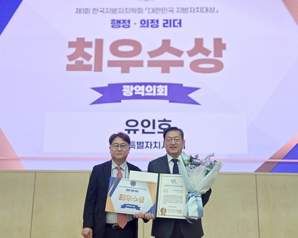 [충청중심뉴스] 세종시의회 유인호 의원이 한국지방자치학회가 주관하는 ‘2025 대한민국 지방자치대상’에서 의정리더부문 최우수상을 수상했다.