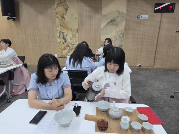 이어 일본 학생들은 한복을 입고 한국 전통의 아름다움을 직접 느껴보았으며 다도를 통해 한국과 일본의 차 문화를 함께 비교하고 체험하는 시간을 가졌다.